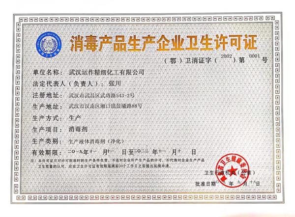 消毒产品生产企业卫生许可证