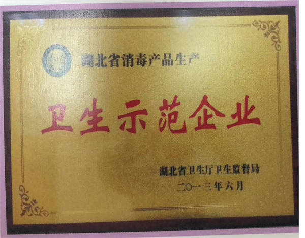 2013年湖北省卫生厅卫生监督局授予本公司“湖北省消毒产品生产卫生示范企业”称号